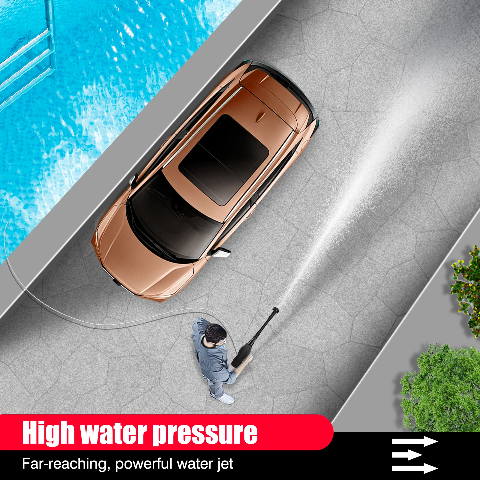 コードレス高圧洗浄機は、車、バイク、バイクなどの掃除だけでなく、ベランダ、窓、デッキ、外壁、床、フェンス、庭など、掃除しにくい場所の掃除にも適しています。